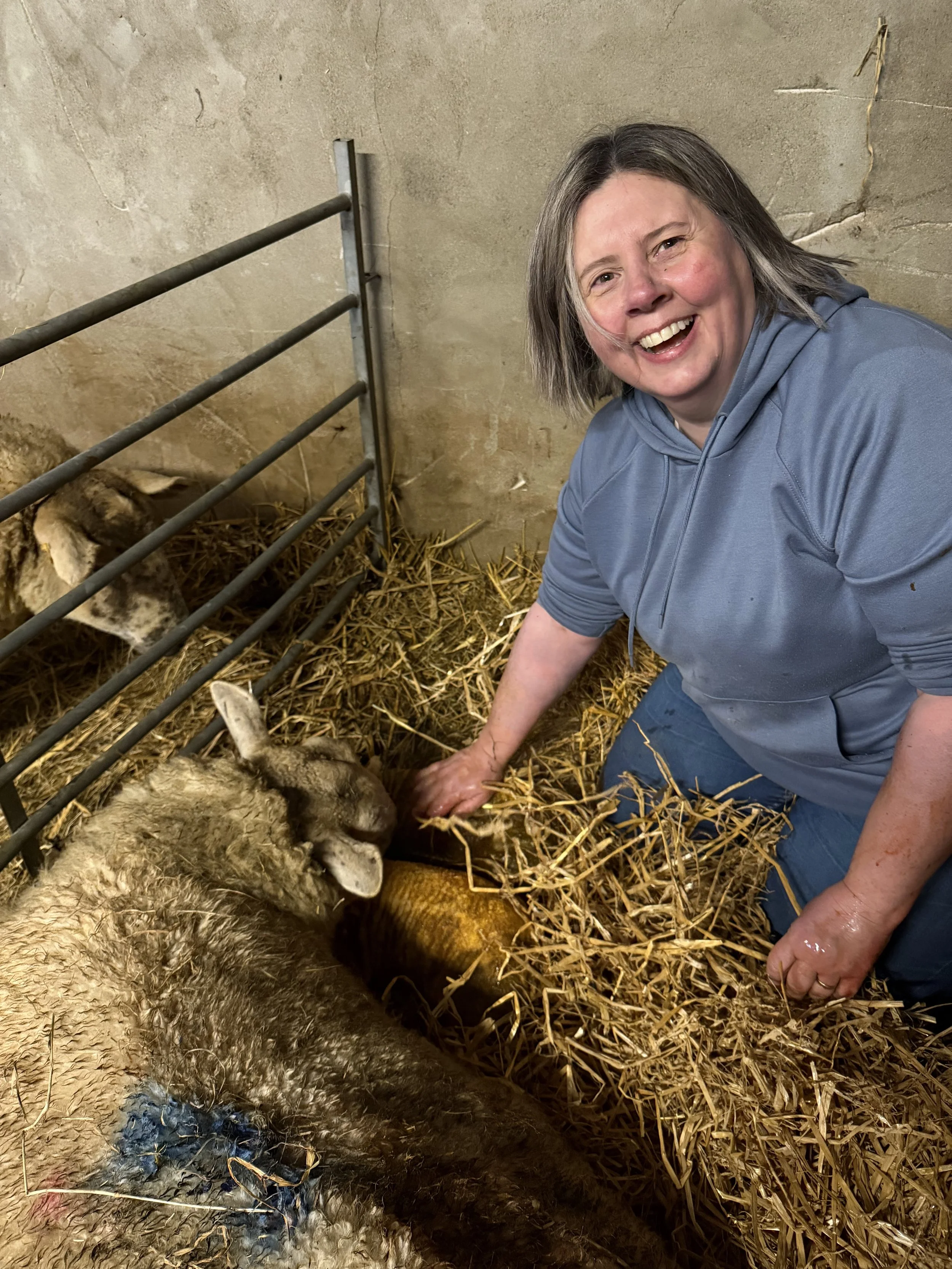 Sam, one of our volunteers was present to share his experiences of supporting us on the farm as a volunteer. And an hour and half before the visit, his mum Julie helped Iain deliver twin lambs - taking her nursing skills to another level.